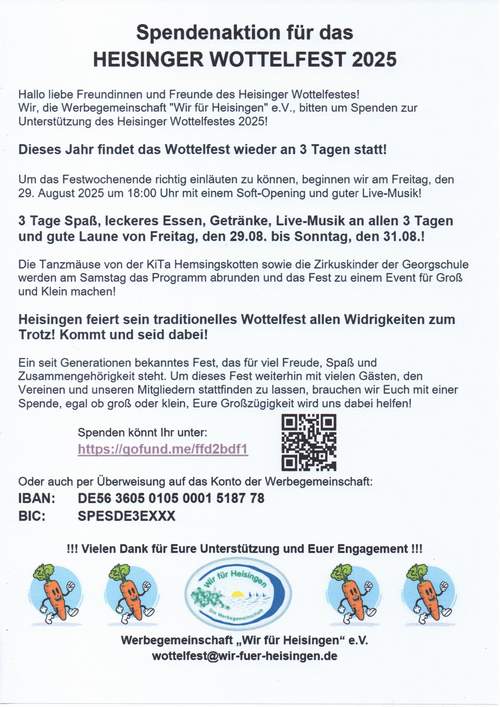 Ufer der Finanzierungslücke des Wottelfestes 2024 gebracht haben!