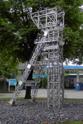 Die Werbegemeinschaft hat in Erinnerung an den Bergbau in Heisingen eine Replica des Carl Funke Förderturms aufgestellt: